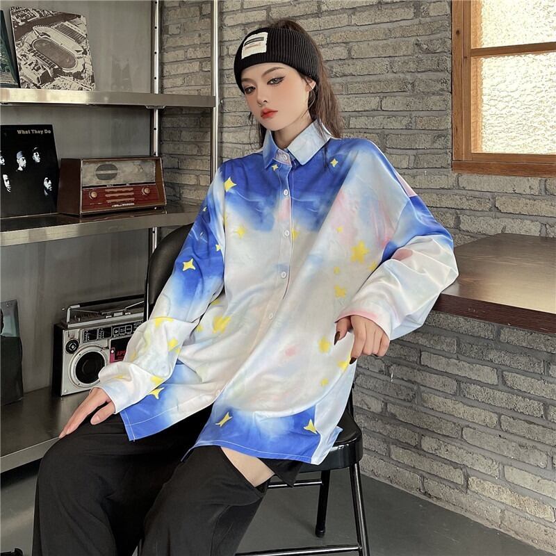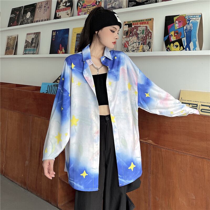 シャツ オータムプリントジャケット ルーズカラートップス ロング ストリート 秋物 スクウェア Brother_is_Style52896946511