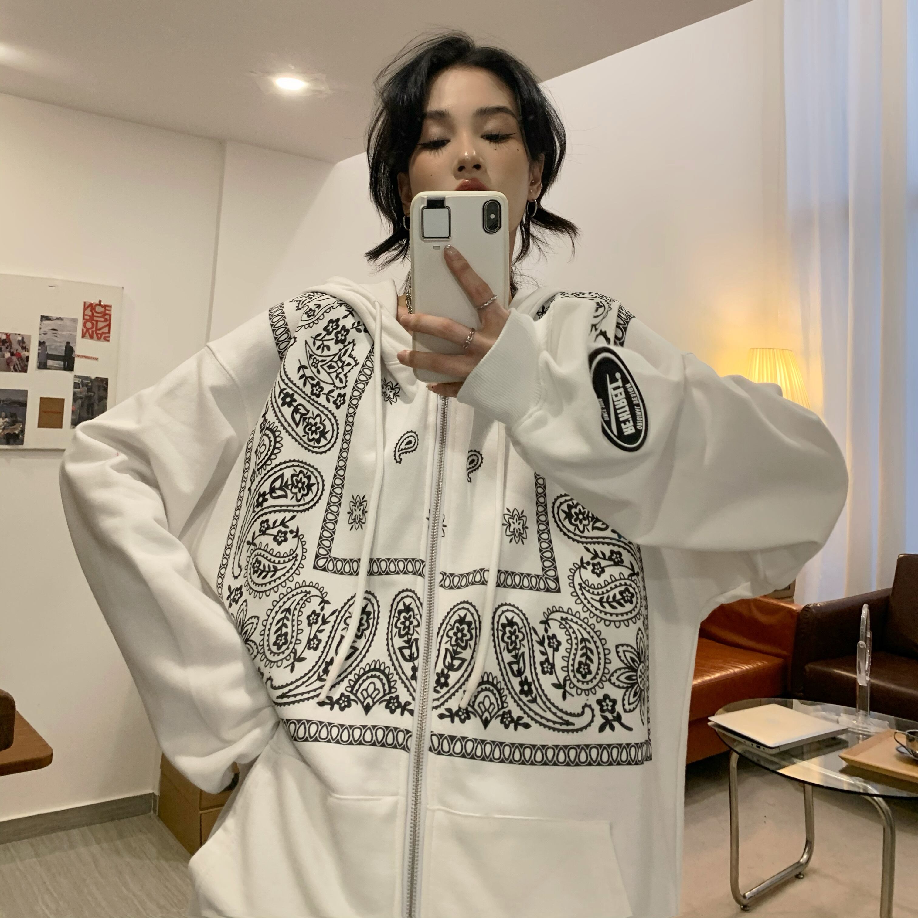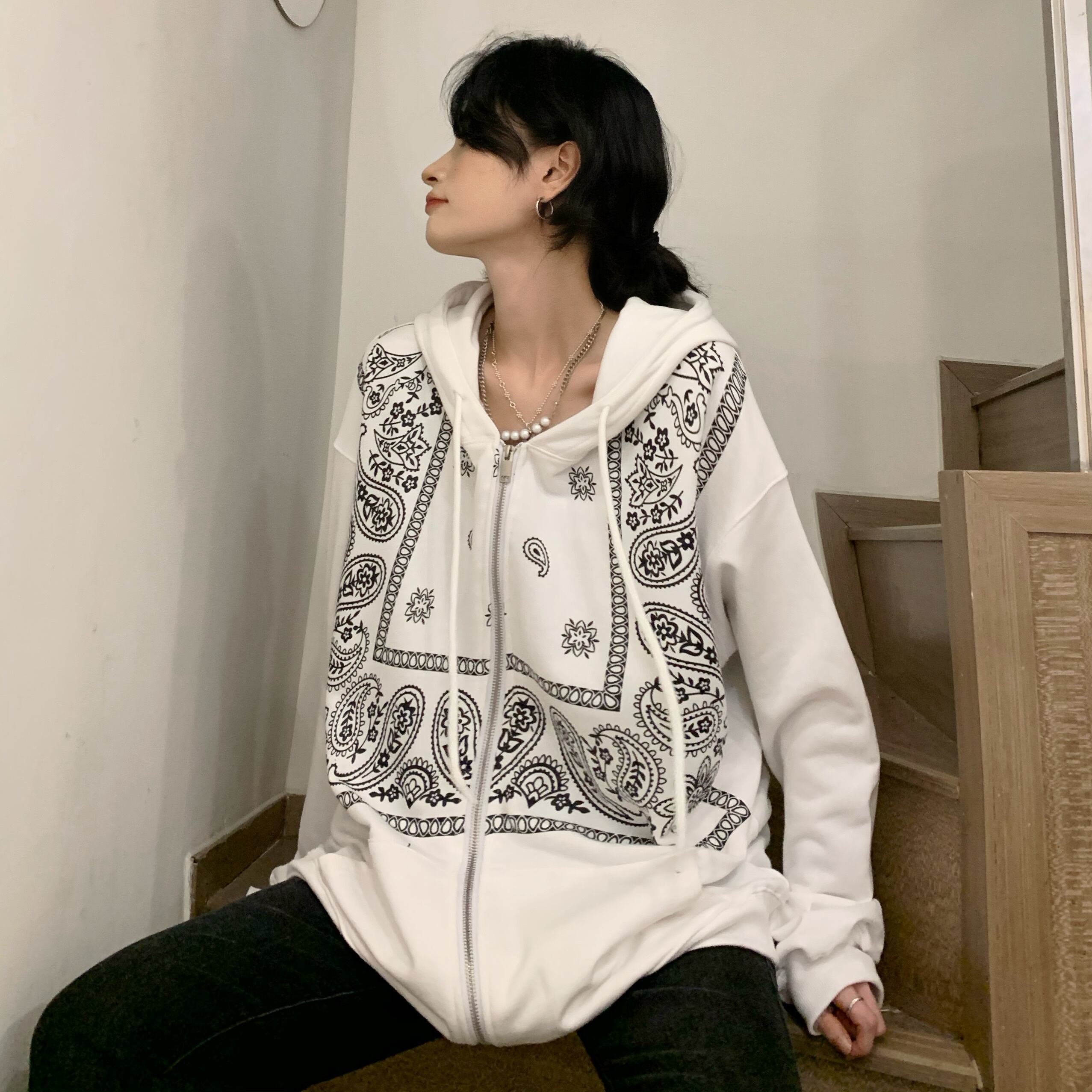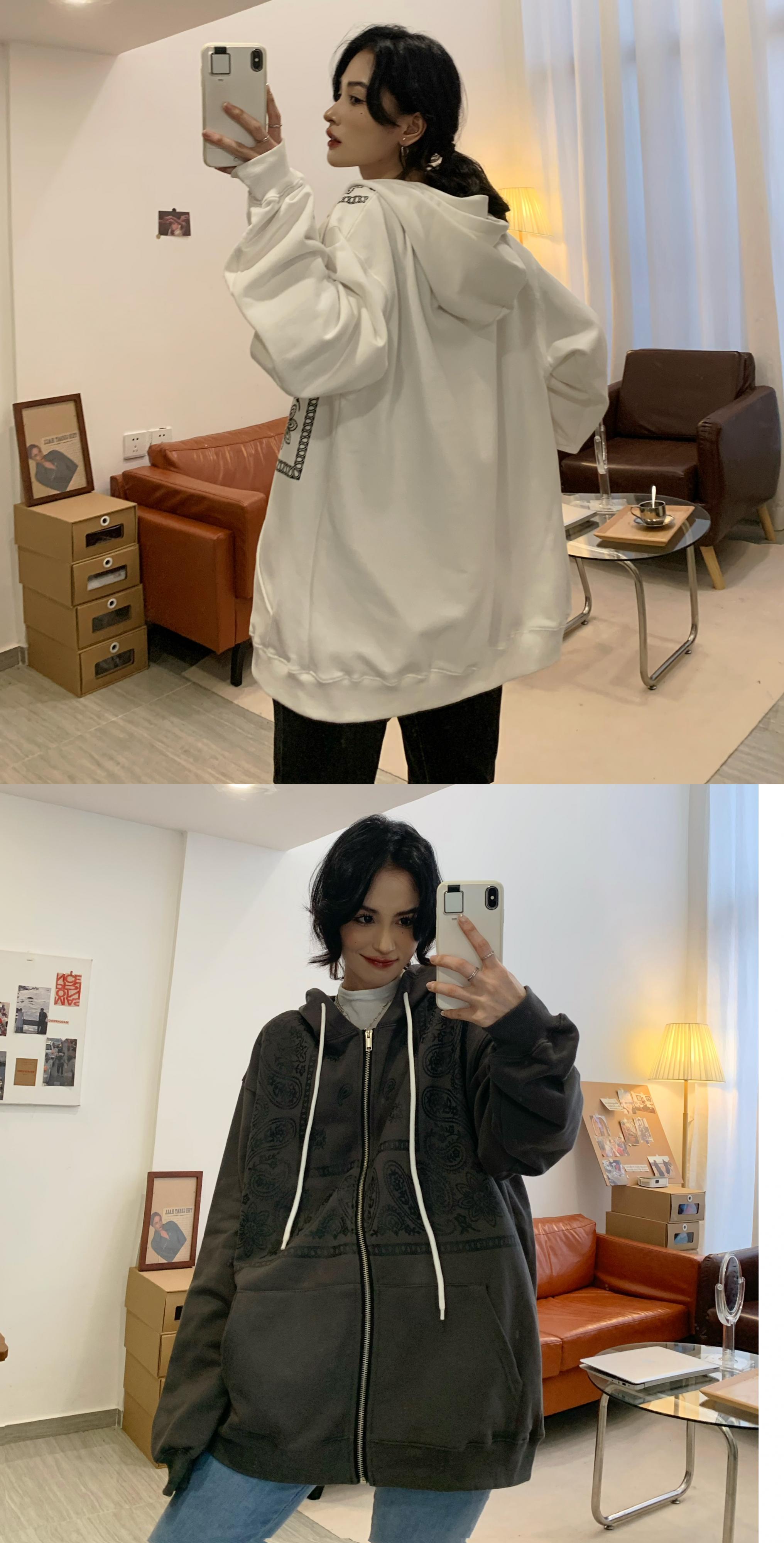 プリントフードセーター ジャケット オータムダークスタンダードルーズシャツ ロング レトロ 秋物 Brother_is_Style55849452380