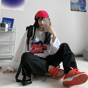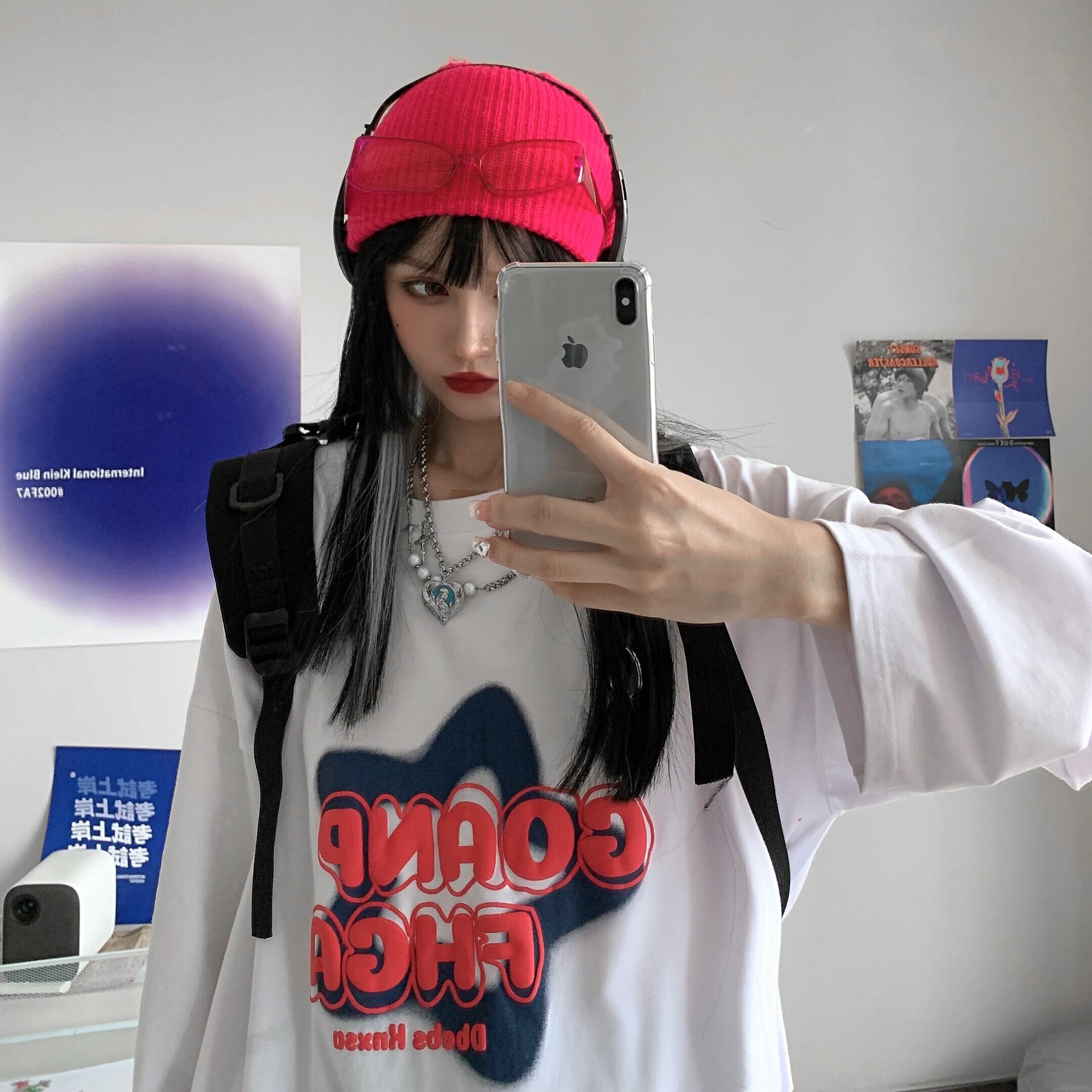 オータムスタンダードTシャツ シャツ ブラックルーズトップス ロング レトロ 秋物 Brother_is_Style71949248145