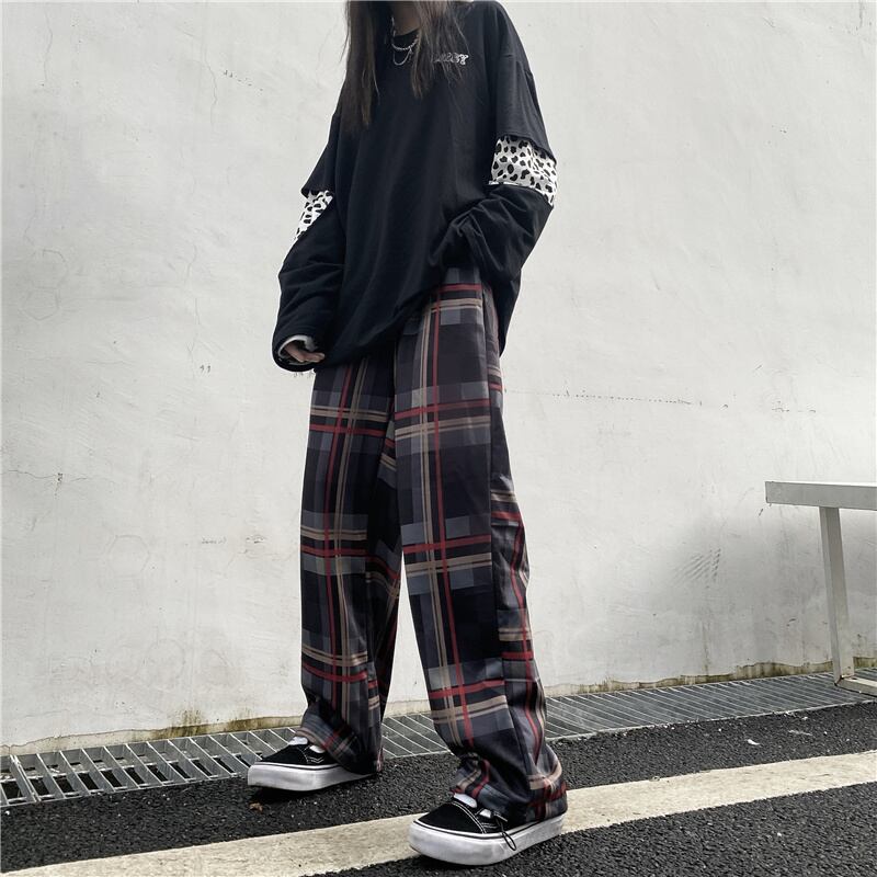 スタイルスタンダード格子柄ストライプパンツ ルーズハイウェストウェストカジュアルオータム レトロ かわいい 秋物 Brother_is_Style49254900634
