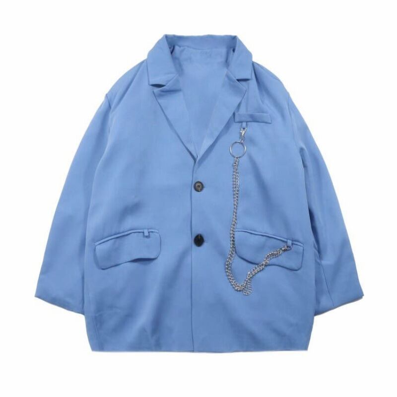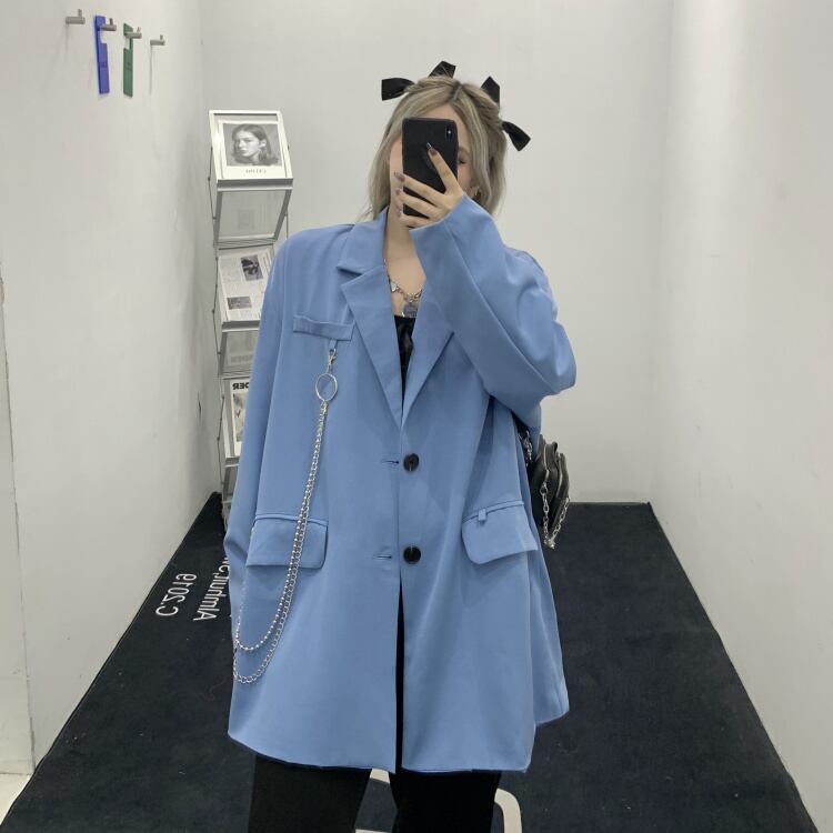 トップス レディースオータム薄手チェーン ジャケット ブラックルーズ ロング 秋物 Brother_is_Style85758778678