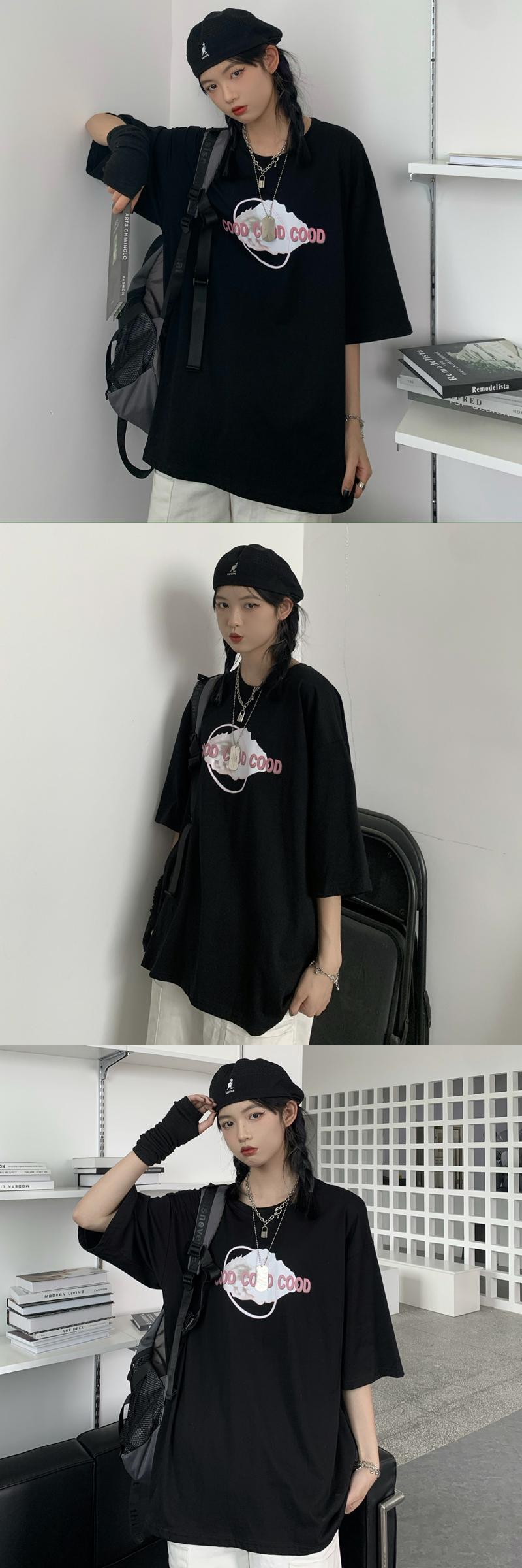 Tシャツ レディースサマースタイルプリントルーズホワイトトップス 夏物 Brother_is_Style79034250455