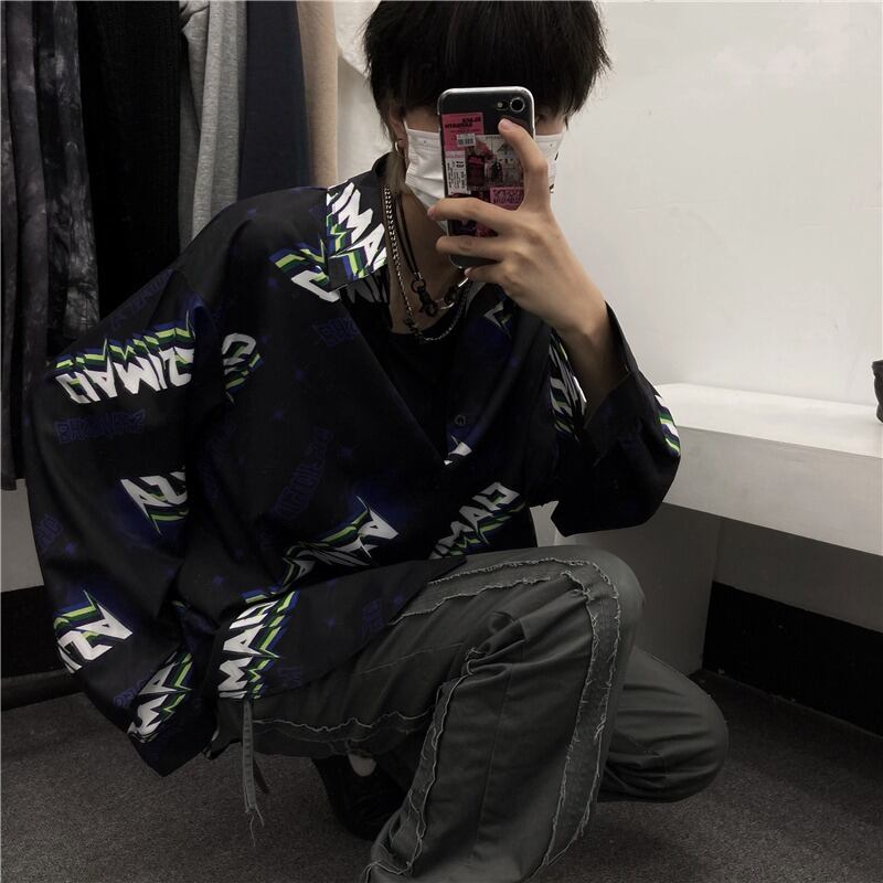 シャツ オータムダークプリントジャケット ルーズトップス ロング ストリート 秋物 Brother_is_Style19902602047