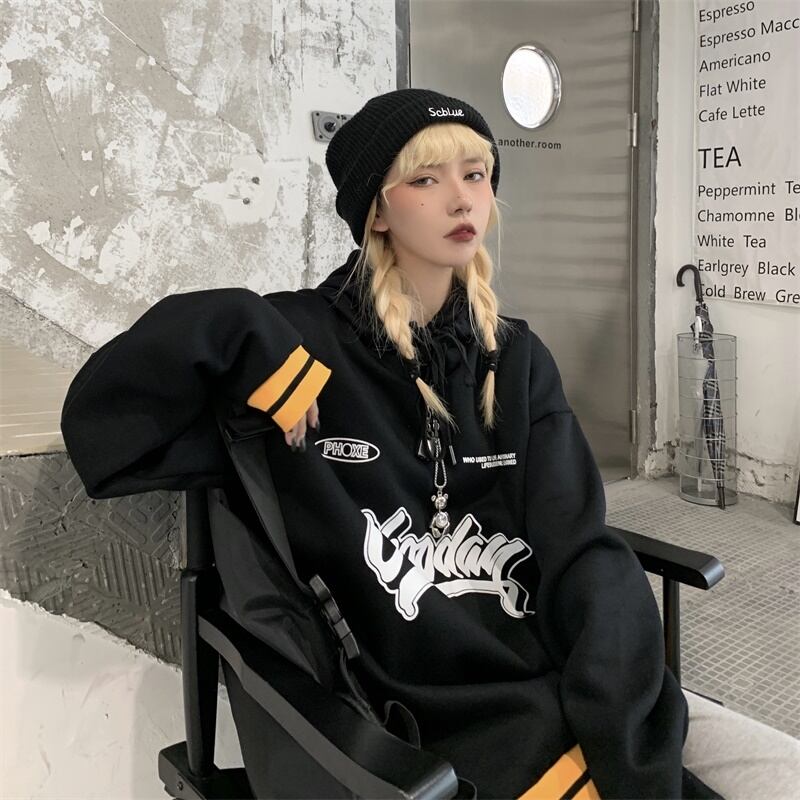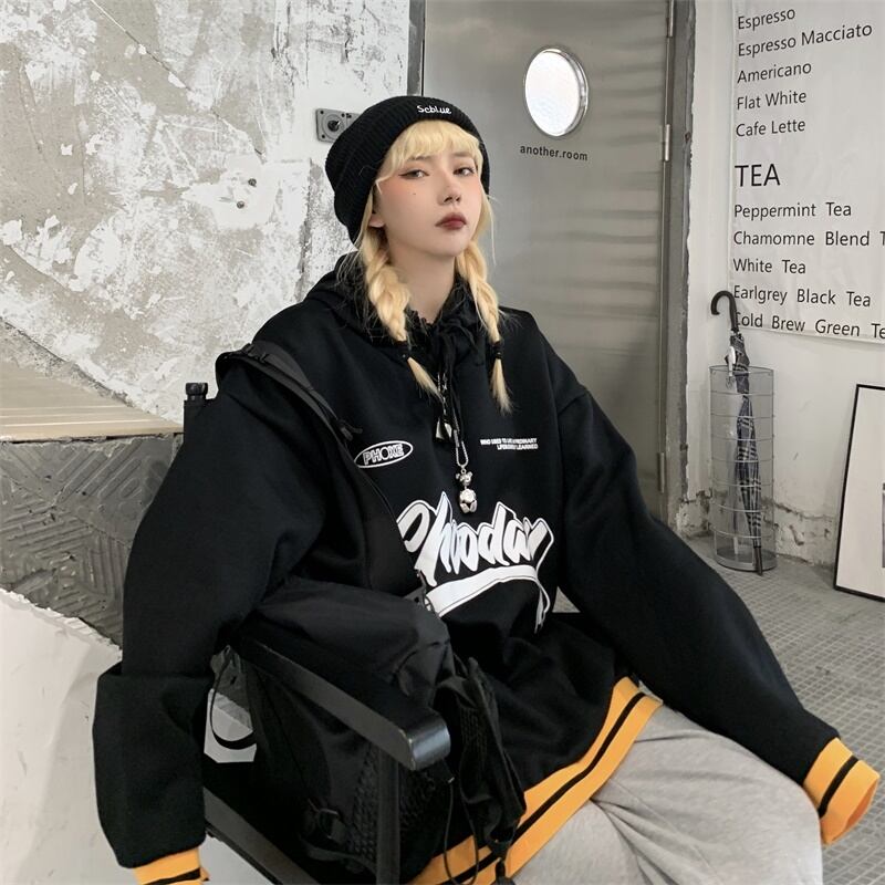 ブラックベルベットフードセーター コート ルーズシャツ オータムレディース ロング ストリート 秋物 Brother_is_Style63617351790