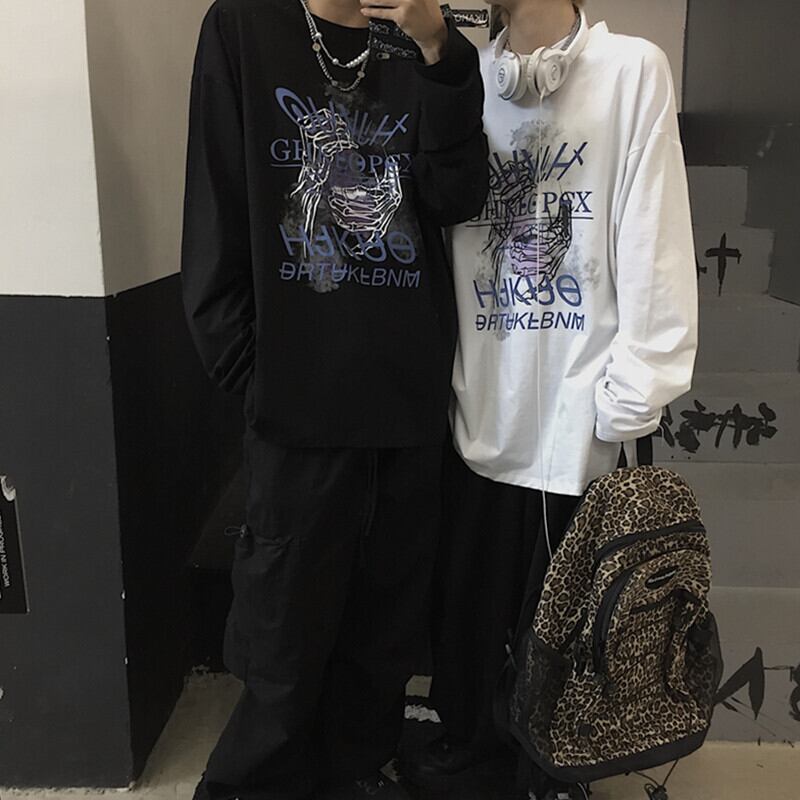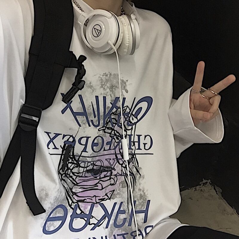 オータムプリントTシャツ ルーズラウンドネックトップス レディース ロング 秋物 Oネック Brother_is_Style44733271717