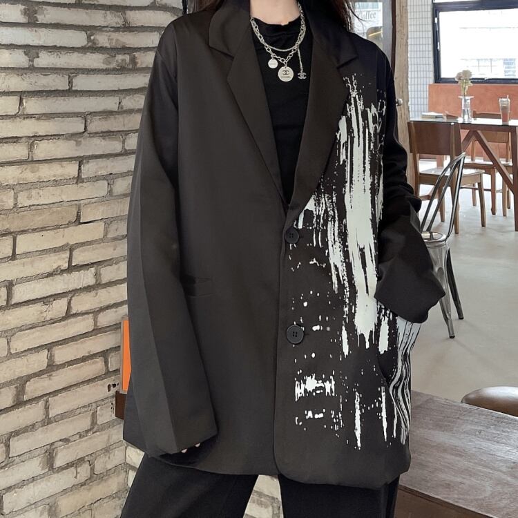 オータムダークジャケット ルーズブラックレディース ロング 秋物 Brother_is_Style69730426184