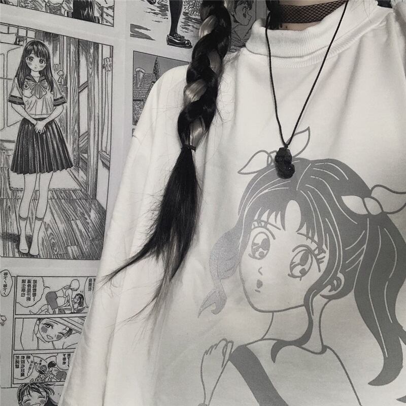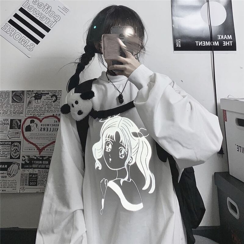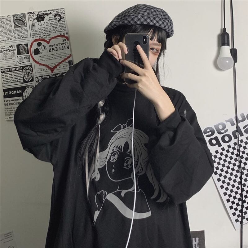 オータムダークスタンダードプリント柄プルオーバー セーター ブラックルーズトップス ロング レトロ 秋物 Brother_is_Style63987963277