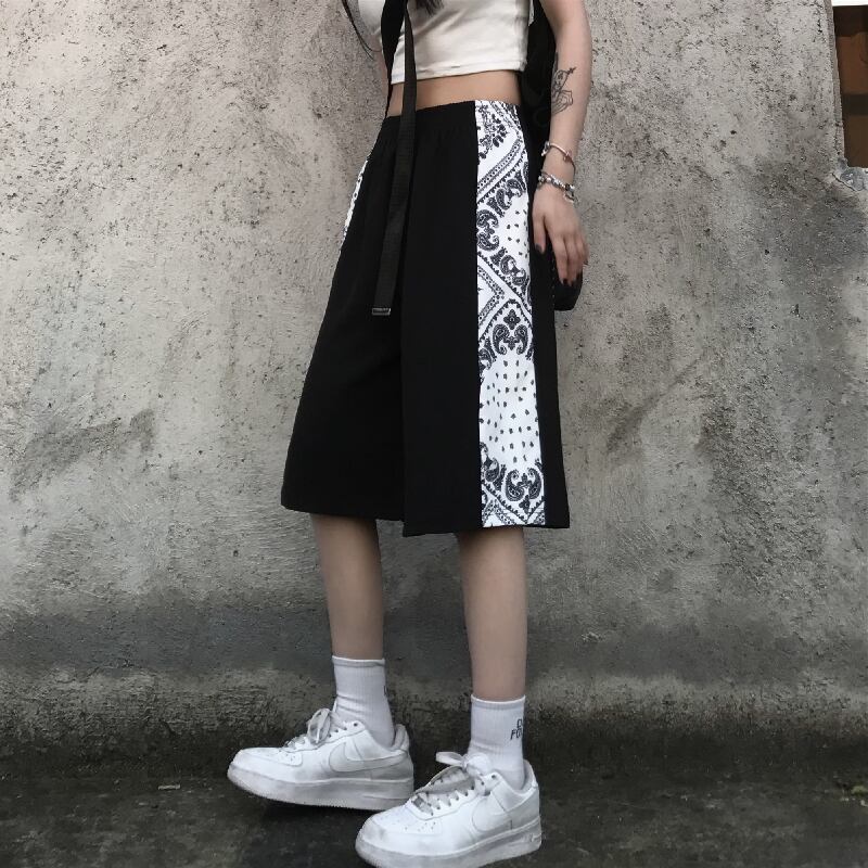 パンツ レディースサマーFlowerデザイン ブラックショーツ ルーズハイウェストカジュアル 夏物 ブルマー フラワーデザイン Brother_is_Style74428309949