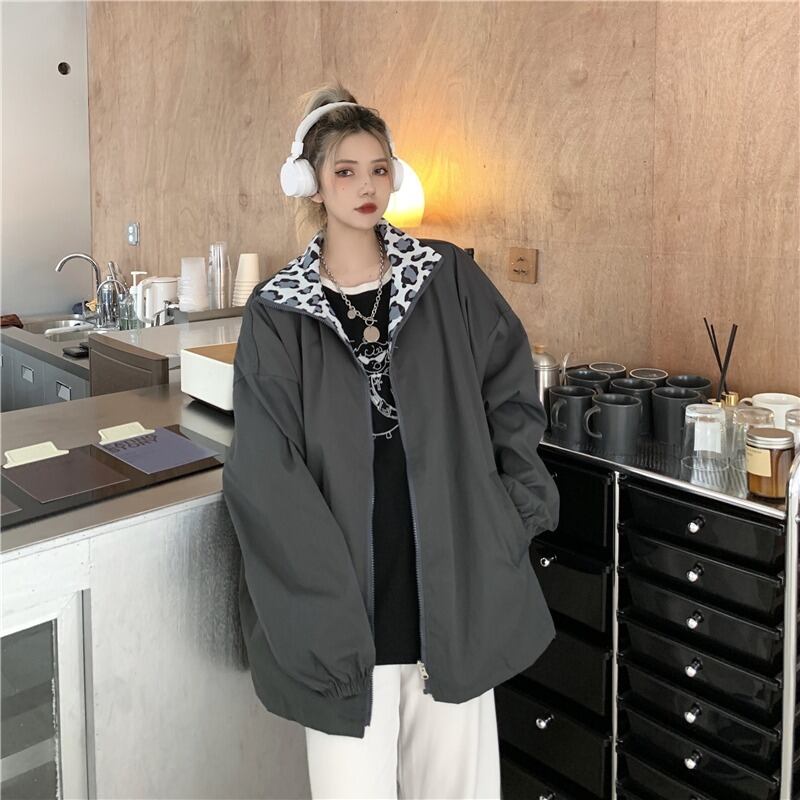 スタンダードレオパードプリント柄コート ルーズジャケット トップス レディース ロング レトロ Brother_is_Style98939161542