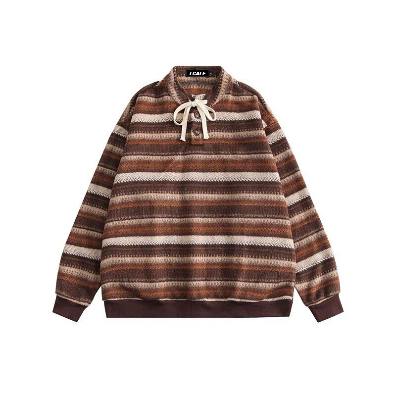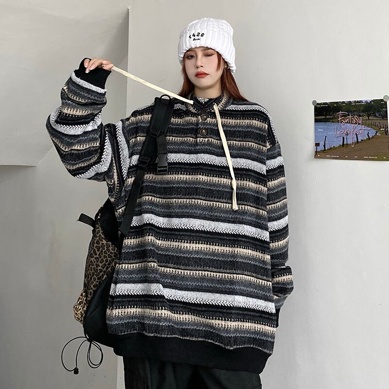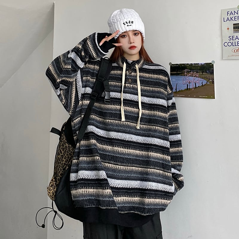 オータムスタンダードストライプニットセーター コート ルーズトップス レディース ロング レトロ 秋物 Brother_is_Style88140012389