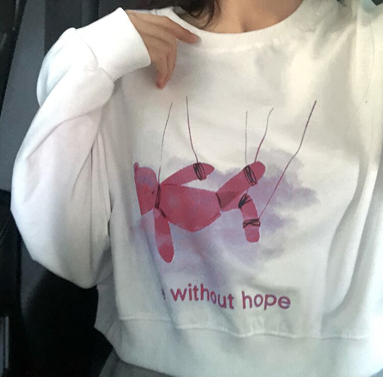 色:白いぶら下がっているクマの短いセーター,ブラックサスペンドベアショートスウェットシャツ