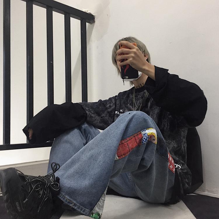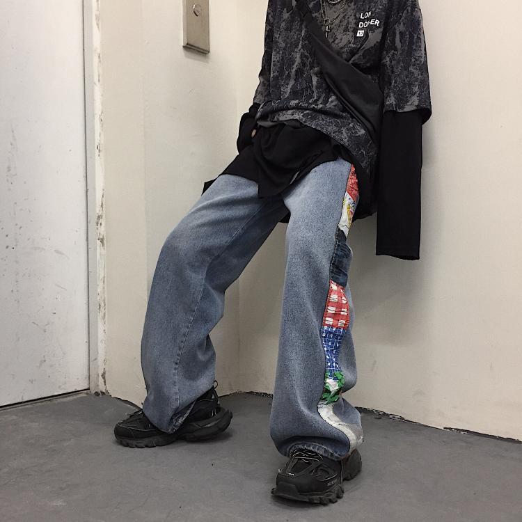 スタイルスタンダードパッチワークジーンズ ルーズワイドレッグパンツ レディース レトロ ストリート かわいい ワイドパンツ Brother_is_Style45915945439