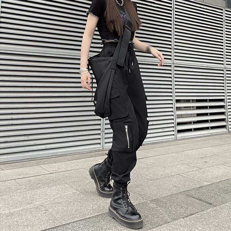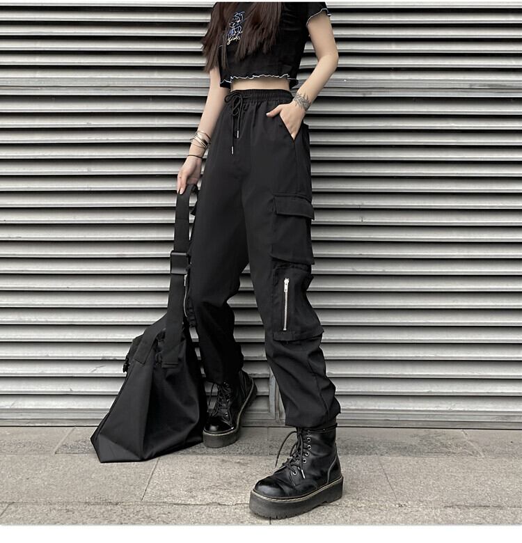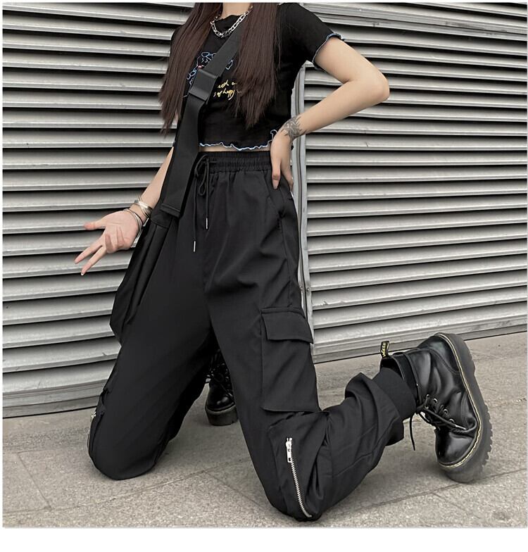パンツ オータムスタイルブラックルーズハイウェストウェストオーバーオール カジュアル 秋物 Brother_is_Style42718884477