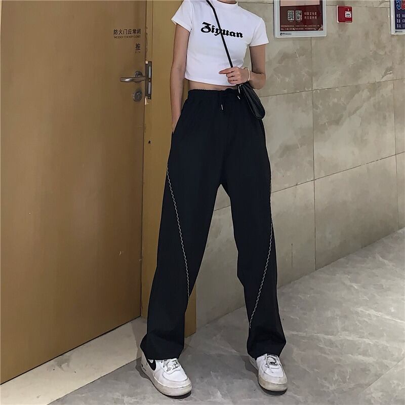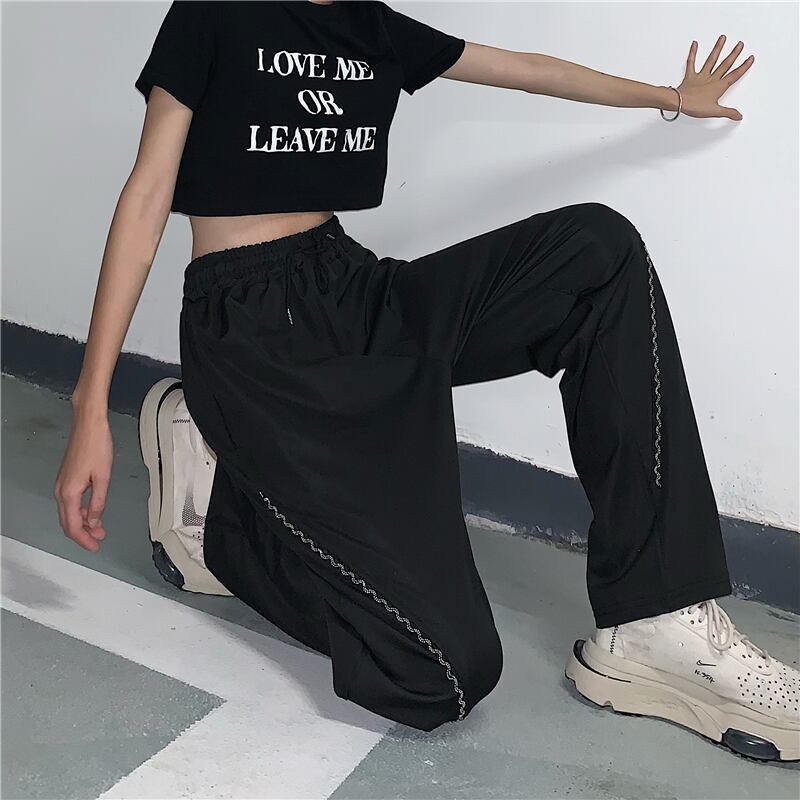 薄手パンツ レディースサマースタンダードブラックカジュアルルーズハイウェストウェストワイドレッグ レトロ ストリート 夏物 ワイドパンツ Brother_is_Style8123713687