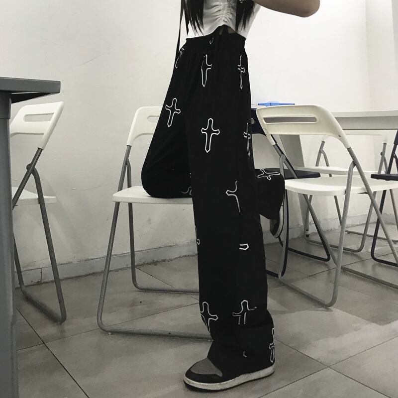 ブラックパンツ サマーダーククロスルーズワイドレッグハイウェストウェストカジュアル 夏物 ワイドパンツ Brother_is_Style32956259967