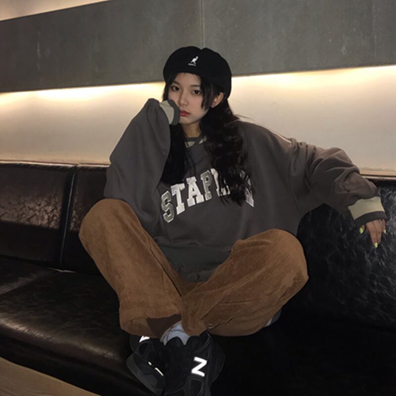 オータムスタイル刺繍プルオーバー セーター ルーズトップス ロング かわいい 秋物 Brother_is_Style3797252026