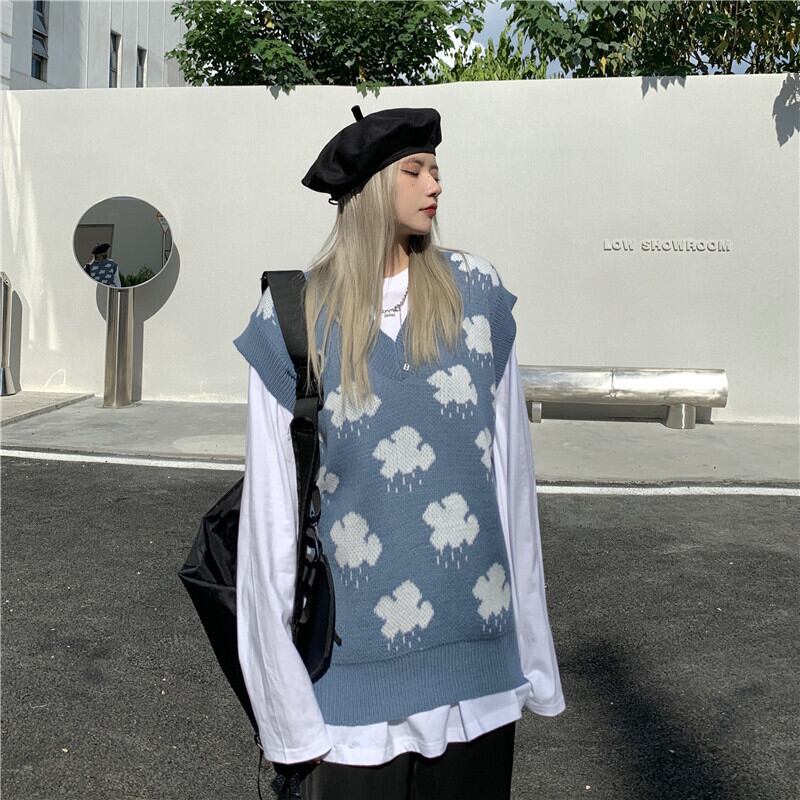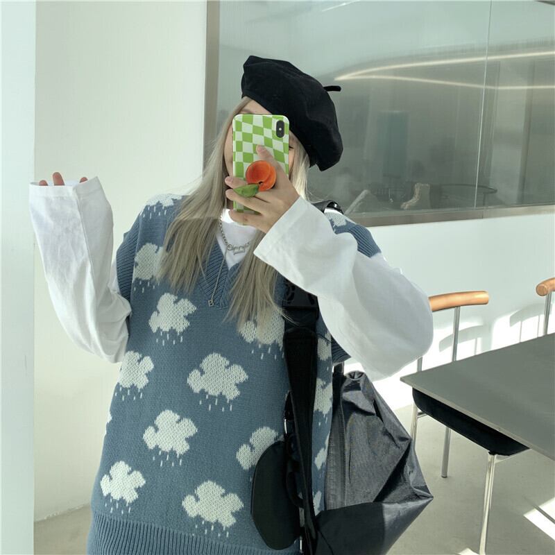 レディースオータムノースリーブプルオーバー ジャケット ルーズニットトップス ロング 秋物 Brother_is_Style10474124912