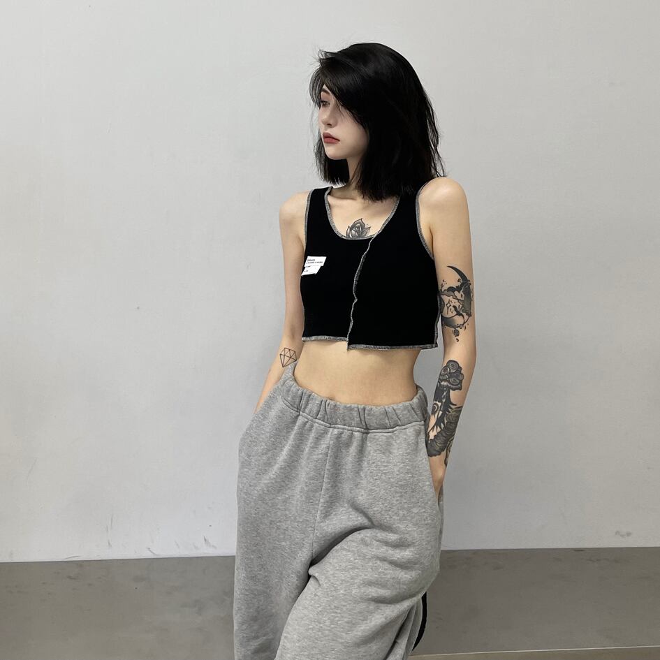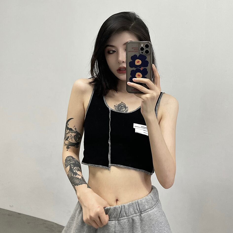 サマースリムクロップドショートトップス レディース 夏物 ステッチ Brother_is_Style73655153784