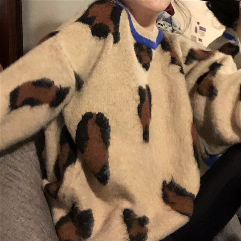 セーター レディースオータムスタイルレオパードプリント柄プルオーバー ニットジャケット ルーズトップス ロング 秋物 Brother_is_Style53075762195