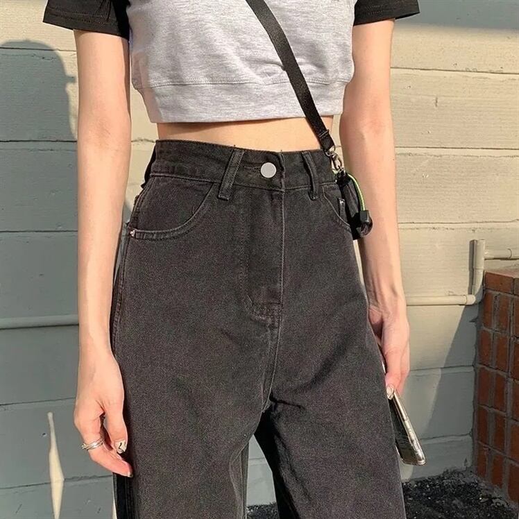 ブラックジーンズ サマースタンダードパンツ ルーズ薄手ハイウェスト レトロ 夏物 Brother_is_Style85212462144