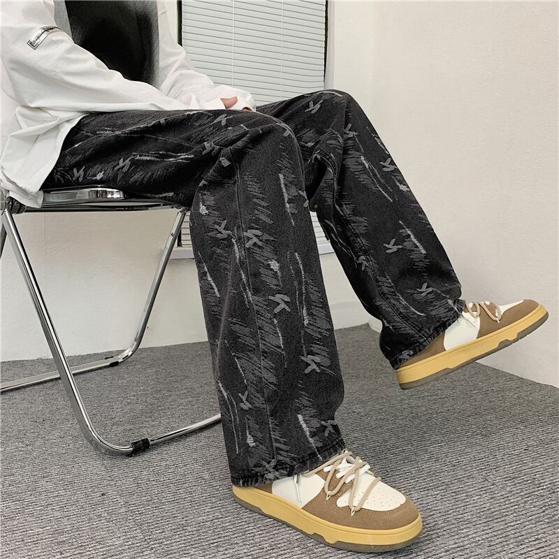 パンツ オータムスタンダードブラックルーズ薄手ワイドレッグハイウェストウェストジーンズ レトロ ストリート 秋物 ワイドパンツ Brother_is_Style87228778719