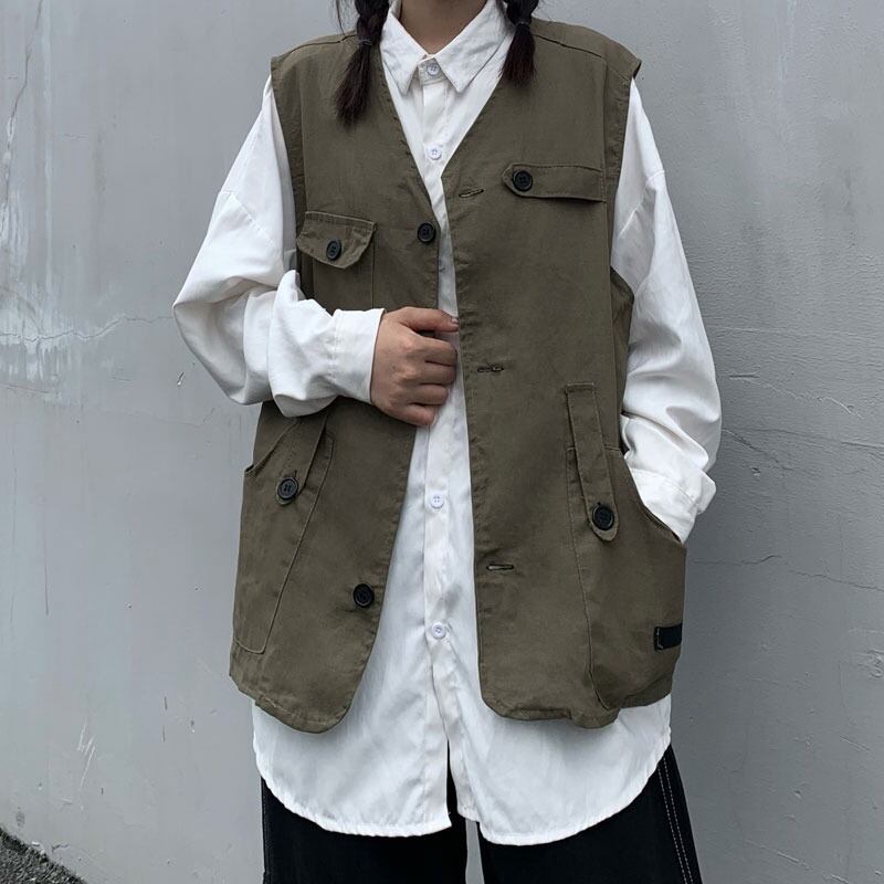 オータムスタイルスタンダードブラックルーズジャケット ノースリーブ レトロ 秋物 Brother_is_Style31226663708