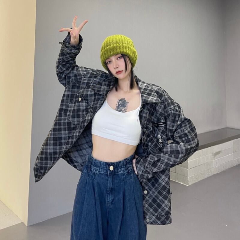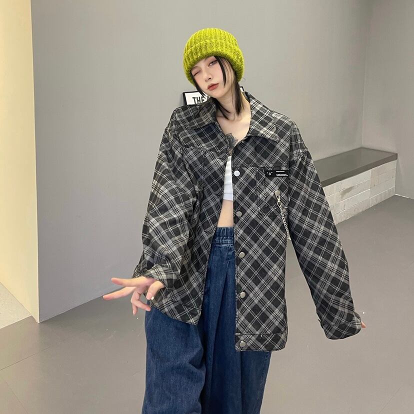 オータムスタンダード格子柄カジュアルジャケット ルーズカーディガン ロング レトロ 秋物 Brother_is_Style44116400451