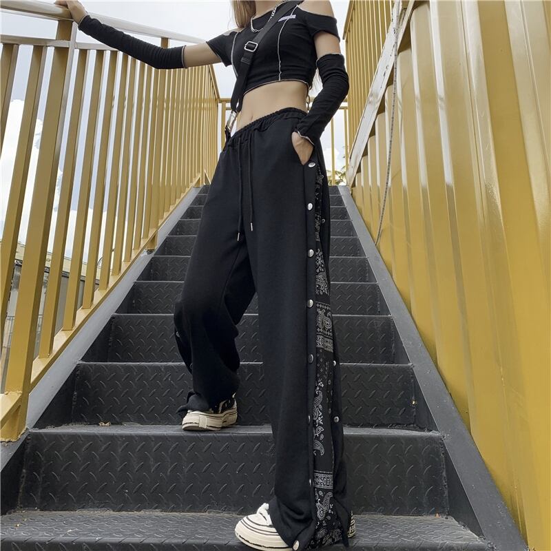 パンツ オータムスタンダードFlowerデザイン ハイウェストカジュアルルーズ薄手 レトロ 秋物 フラワーデザイン Brother_is_Style94589866631