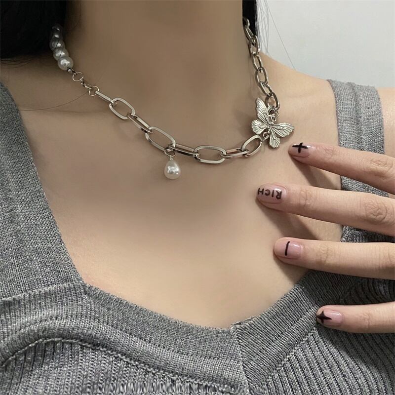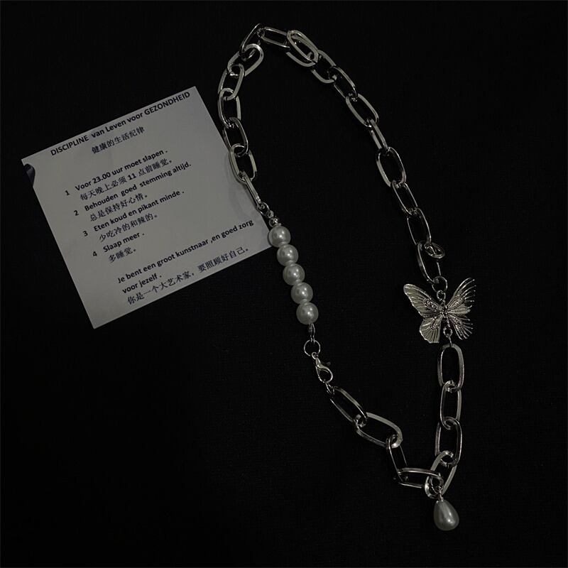 スタンダードレッドパールネックレス アクセサリー Butterflyデザイン レトロ レース ペンダント 真珠 ステッチ Brother_is_Style90504796420