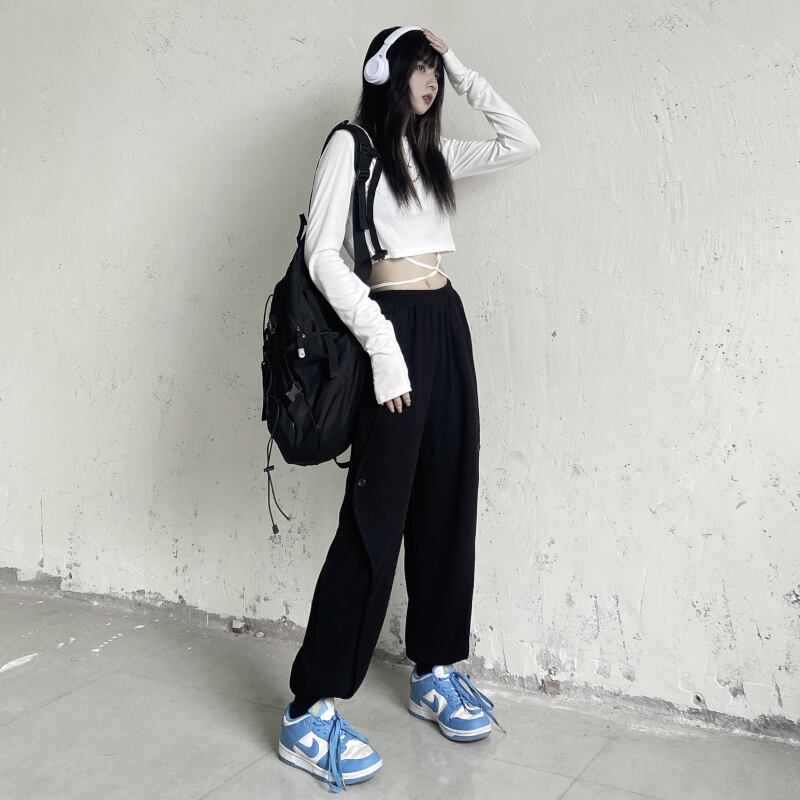 ブラックパンツ オータムスタイルハイウェストカジュアル かわいい 秋物 Brother_is_Style53736046517