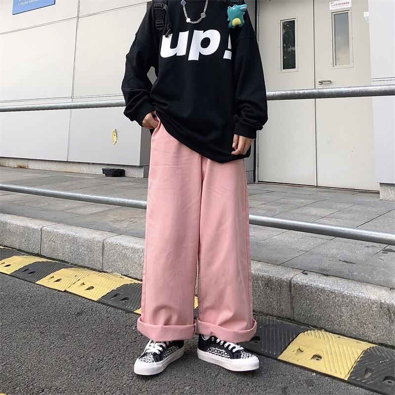 パンツ オータムカジュアルルーズハイウェストウェスト薄手 ピンク 秋物 Brother_is_Style42952672880