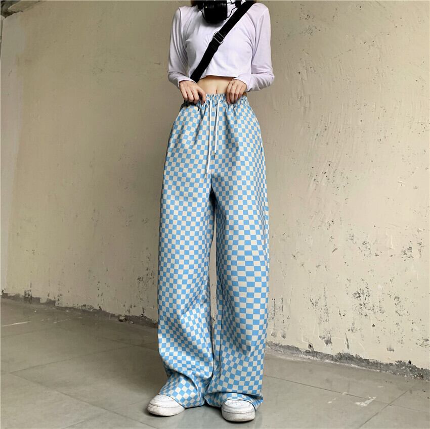 パンツ オータムスタンダード格子柄ルーズウェストワイドレッグ レトロ 秋物 ワイドパンツ Brother_is_Style25504612787