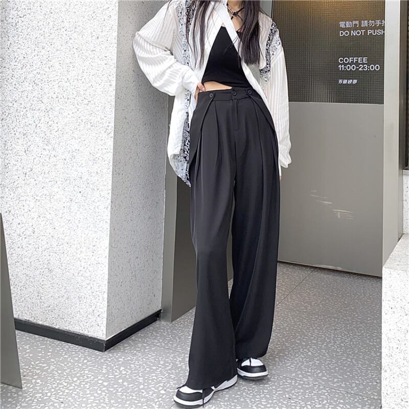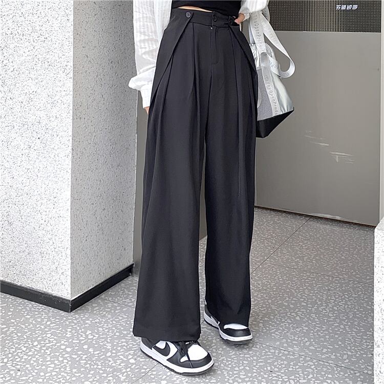 パンツ オータムスタイルスタンダードブラックカジュアルルーズハイウェストウェスト薄手ワイドレッグ レトロ 秋物 ワイドパンツ Brother_is_Style42915247278