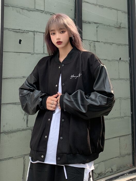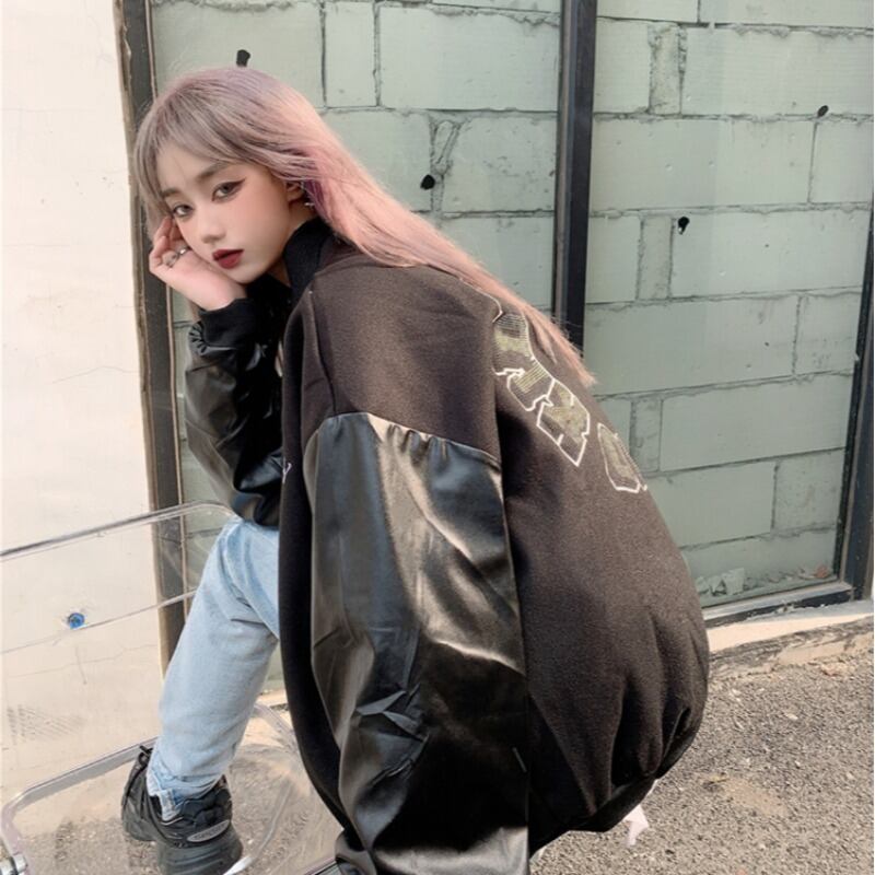 オータムブラックジャケット ルーズトップス レディース ロング ストリート 秋物 Brother_is_Style30111647020