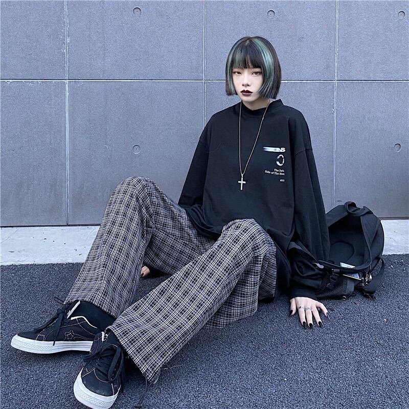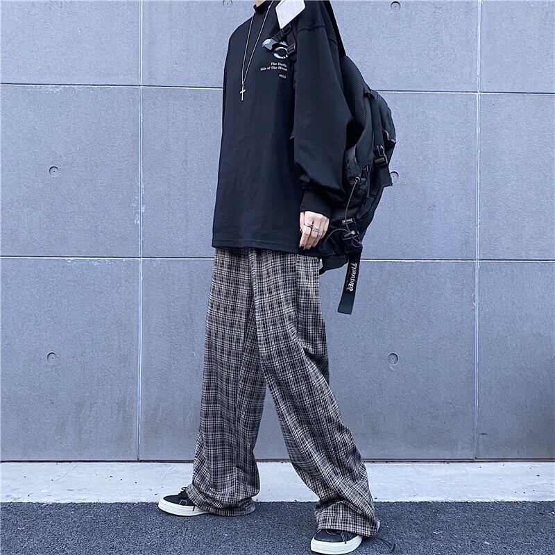 パンツ オータムスタンダードハイウェスト格子柄カジュアルルーズ薄手 レトロ 秋物 Brother_is_Style9858417380