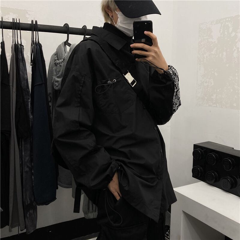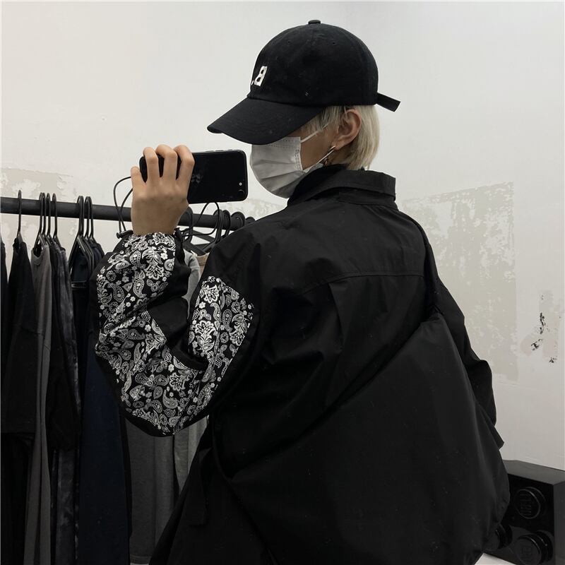 シャツ オータムスタンダードFlowerデザイン ジャケット ルーズブラックトップス ロング レトロ 秋物 フラワーデザイン Brother_is_Style51618681458