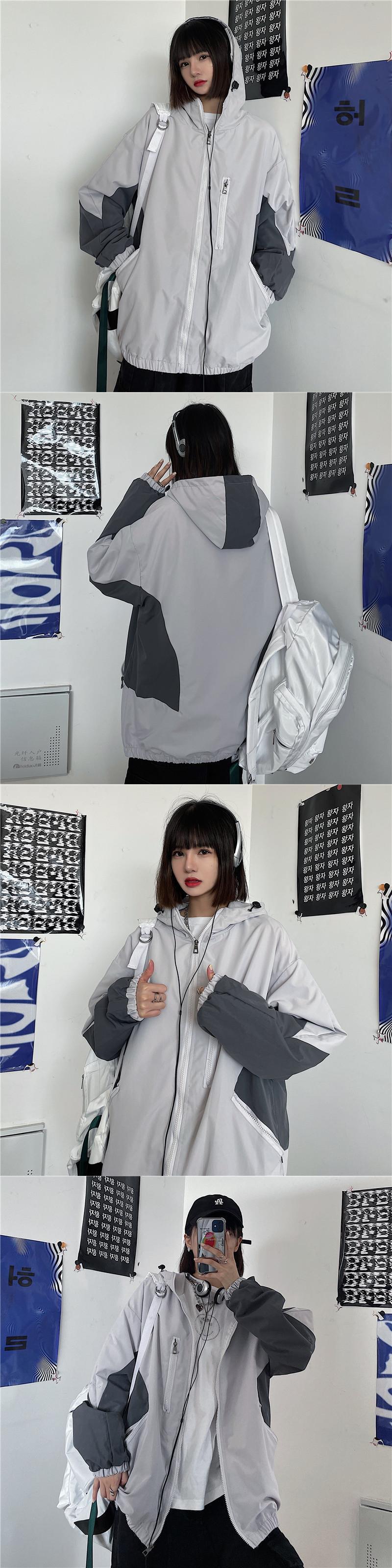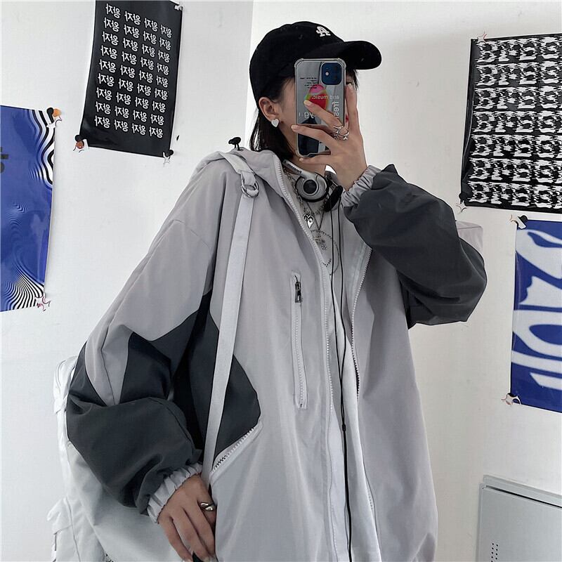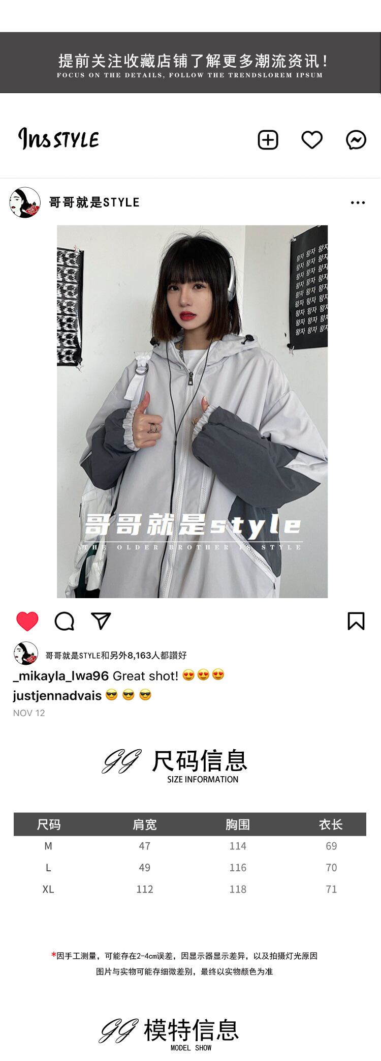 オータムフードジッパージャケット ルーズトップス ロング ストリート 秋物 ステッチ Brother_is_Style84583756466