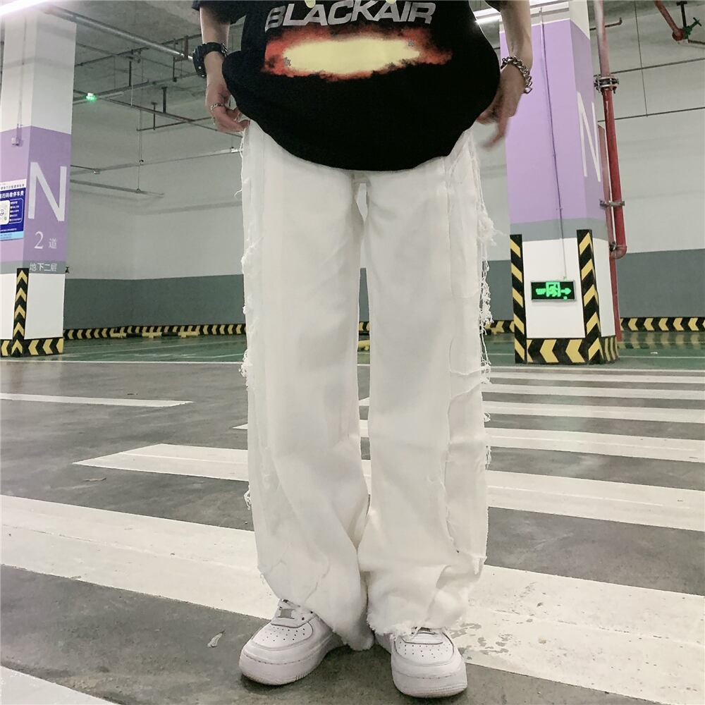 サマースタイルルーズハイウェストウェストワイドレッグパンツ ホワイトジーンズ ストリート 夏物 ワイドパンツ Brother_is_Style83381675682