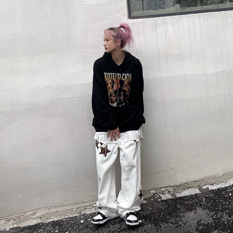 オータムスタンダードプリントホワイトジーンズ ルーズハイウェストウェストパンツ レトロ 秋物 Brother_is_Style26486776741