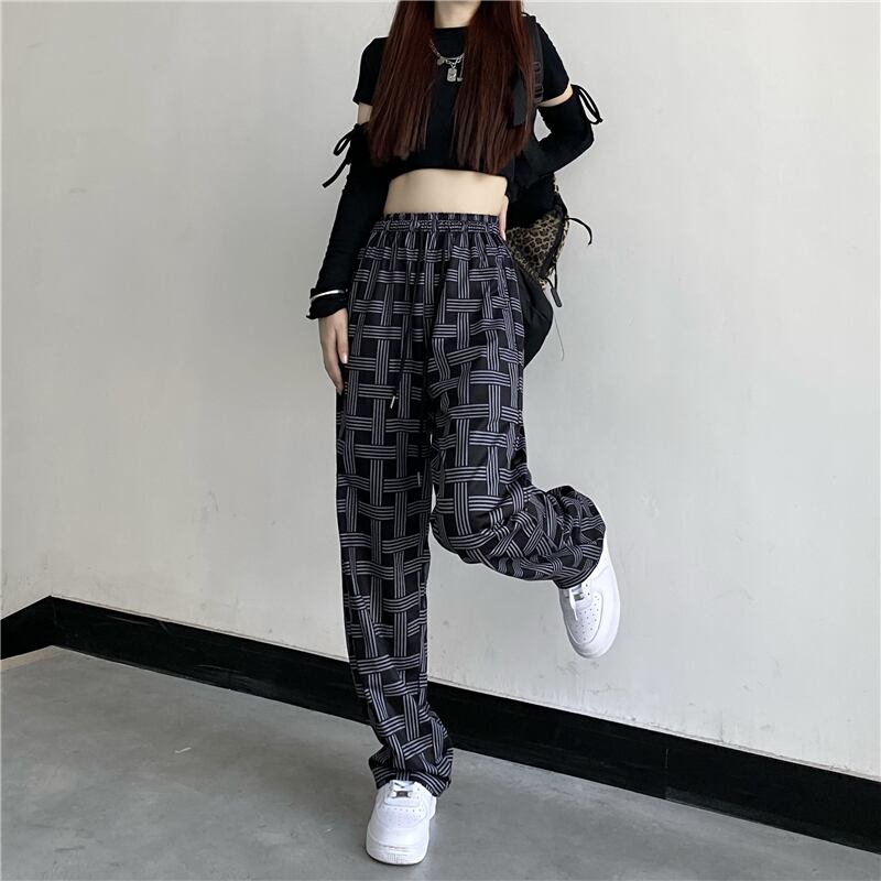 パンツ オータムスタンダード格子柄カジュアルルーズハイウェストウェスト薄手 レトロ 秋物 Brother_is_Style17176223204