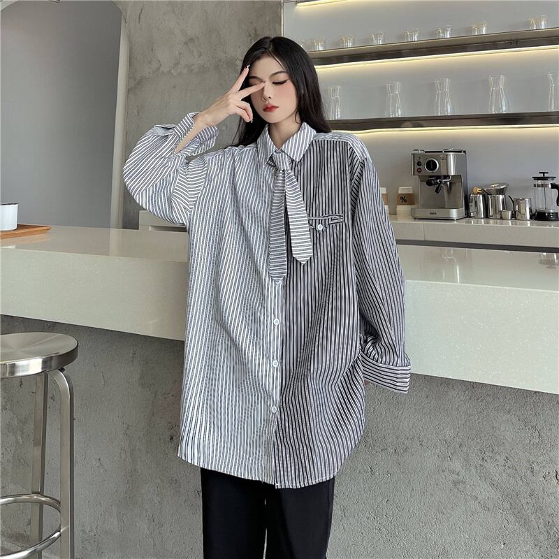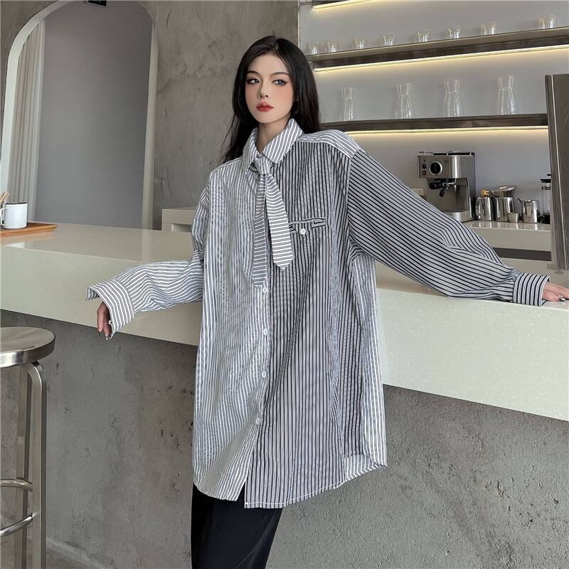 シャツ オータムスタイルストライプジャケット ルーズトップス ロング 秋物 Brother_is_Style71340511933