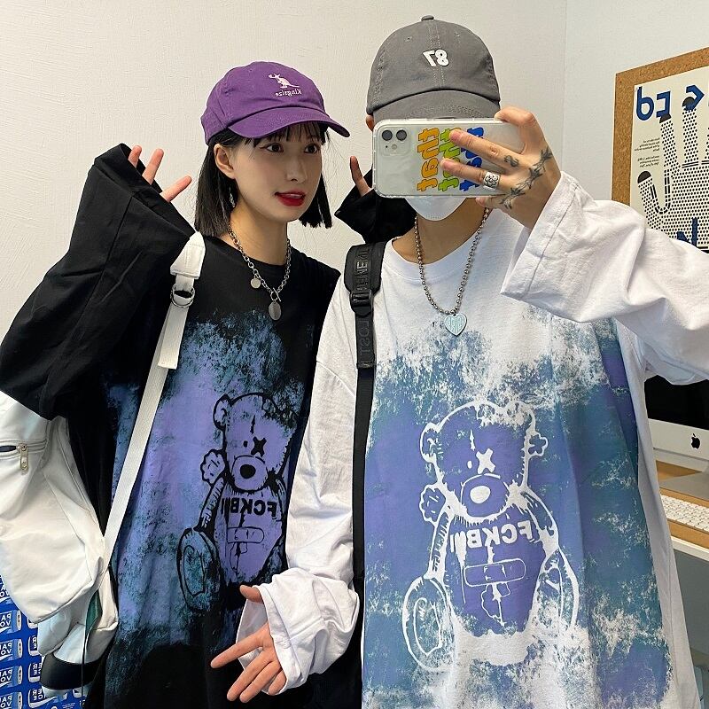 オータムプリント柄Tシャツ シャツ ルーズトップス ロング コットン 秋物 Brother_is_Style12267459478