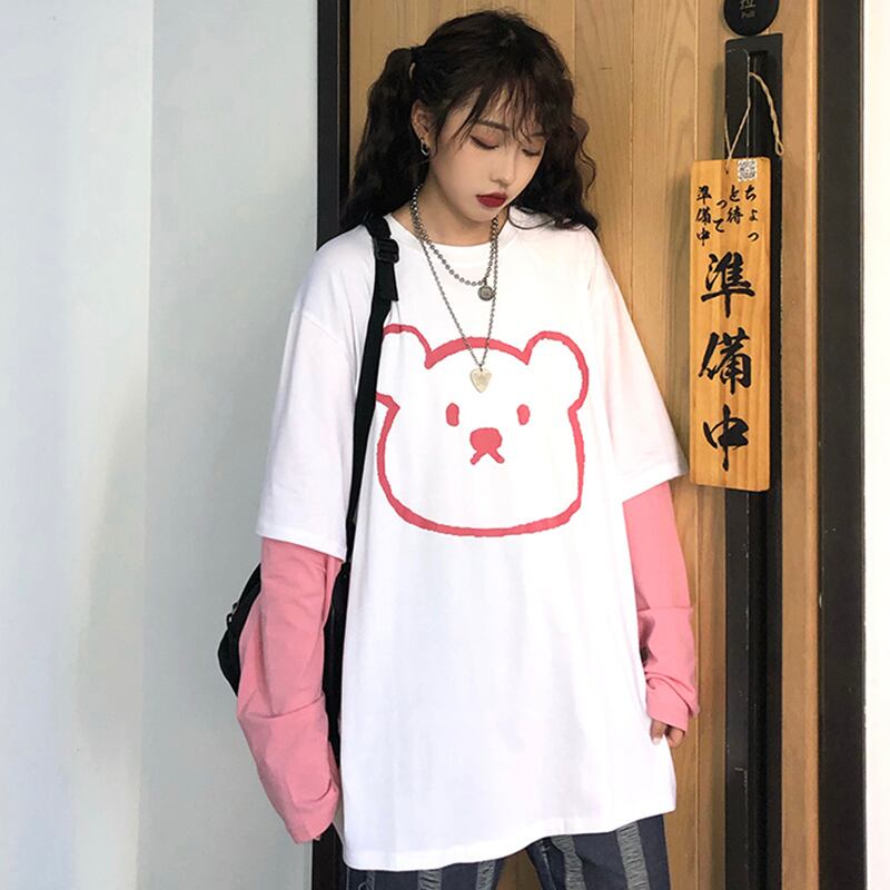 オータムスタイルTシャツ シャツ ルーズトップス ロング ピンク かわいい 秋物 Brother_is_Style67666726340