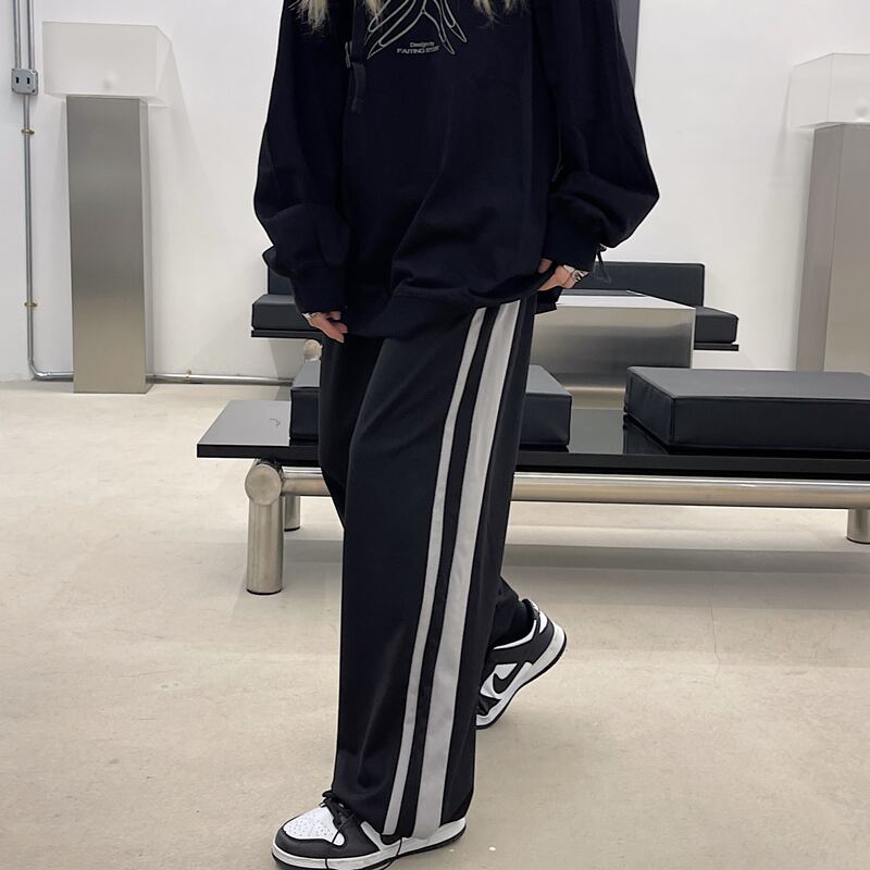 パンツ オータムスタンダードカラーブラックカジュアルルーズハイウェストウェスト薄手ワイドレッグ レトロ 秋物 ワイドパンツ Brother_is_Style3880458134