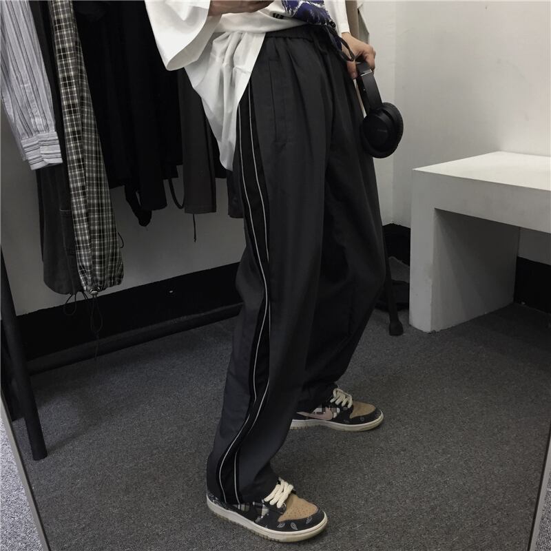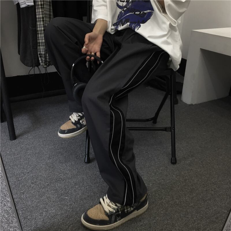 パンツ オータムストライプルミナスカジュアルルーズハイウェストウェストワイドレッグ ストリート 秋物 ワイドパンツ Brother_is_Style88011186719