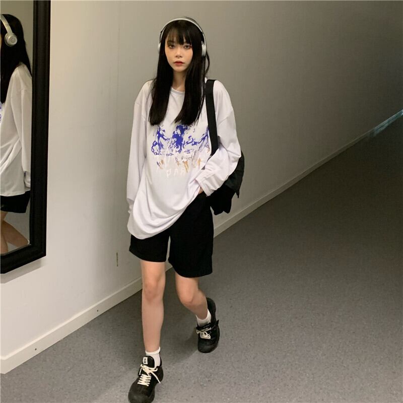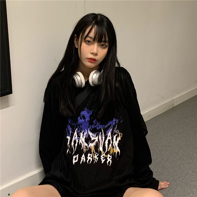 オータムプリントTシャツ ルーズジャケット レディース ロング ストリート 秋物 Brother_is_Style20844453335
