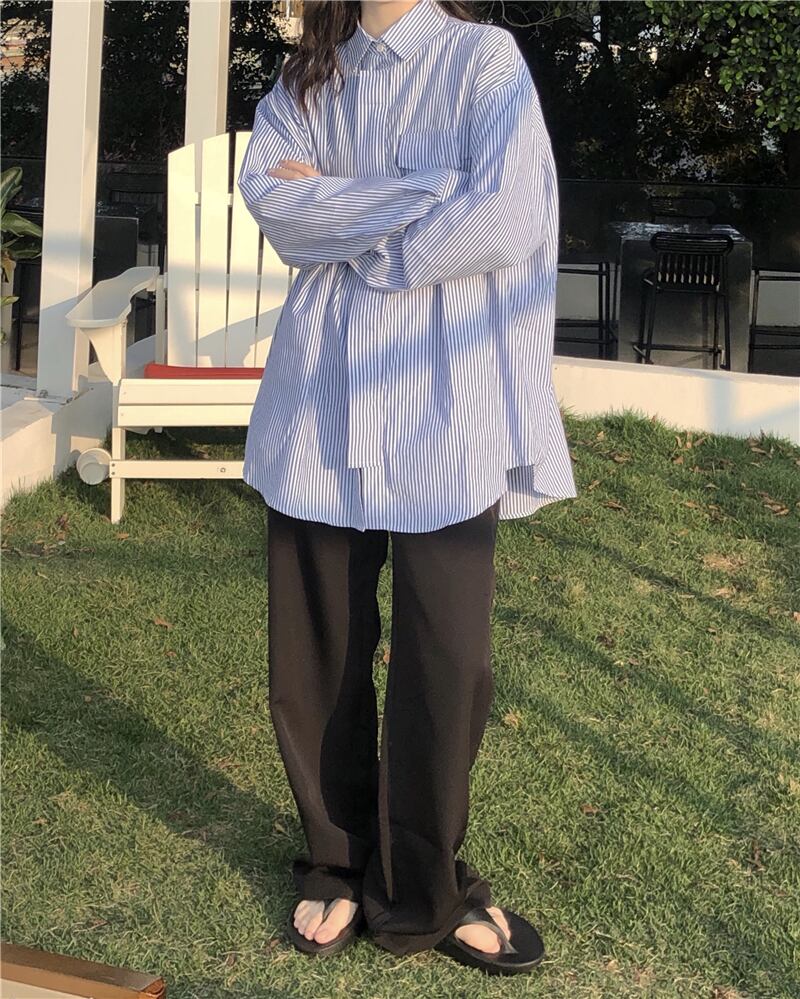 スタイルストライプシャツ ジャケット ルーズトップス レディース ロング Brother_is_Style97491311248