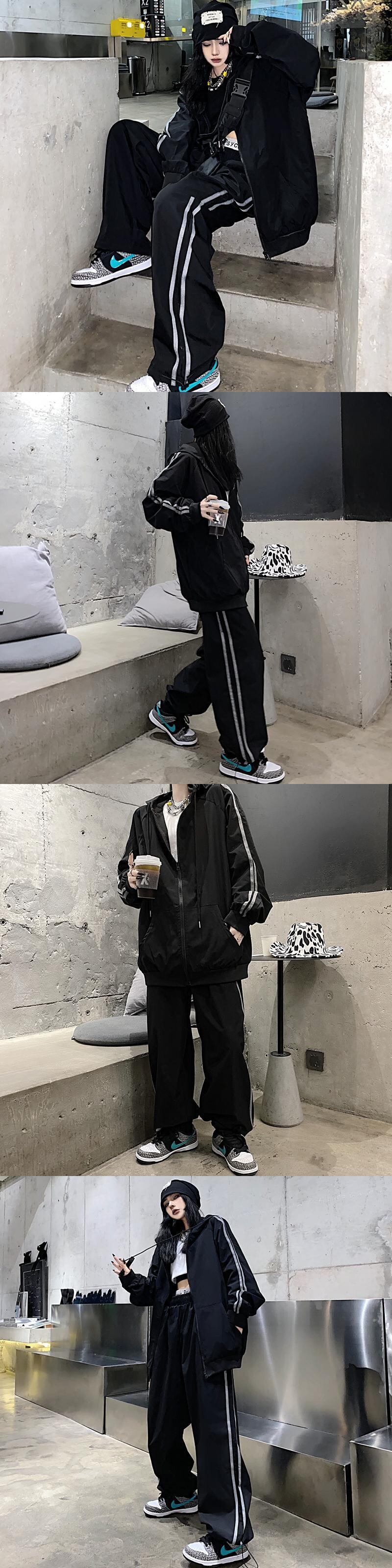 レディースオータムスタンダードフードジャケット ハイウェストウェストワイドレッグパンツ レトロ 秋物 ワイドパンツ Brother_is_Style81842877948