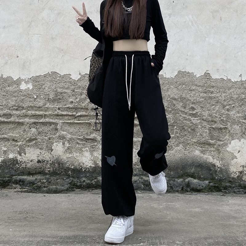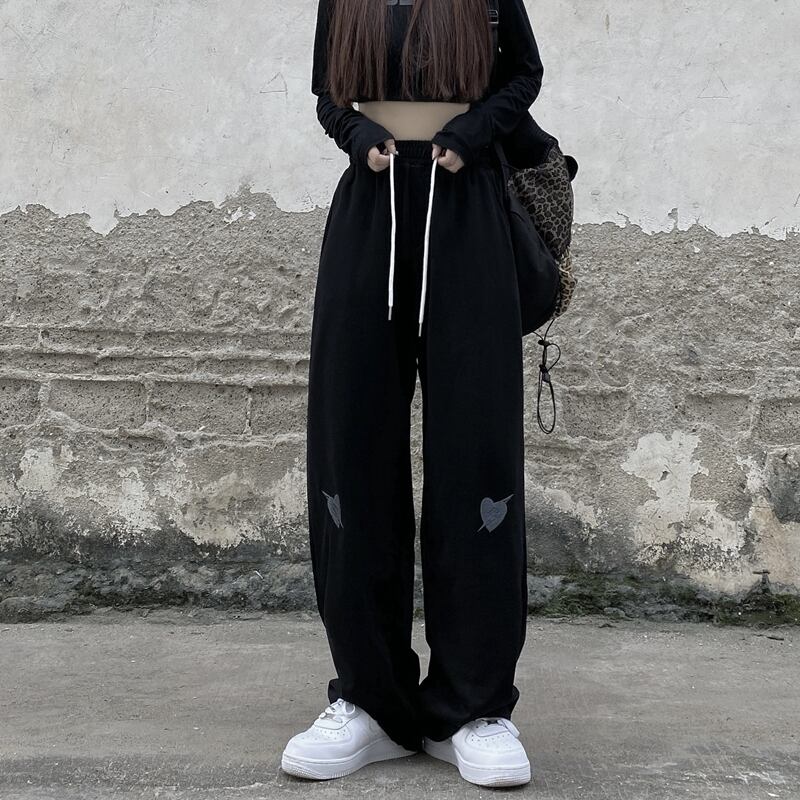 パンツ オータムブラックルーズワイドレッグ レッド 刺繍 秋物 ワイドパンツ Brother_is_Style42900273537