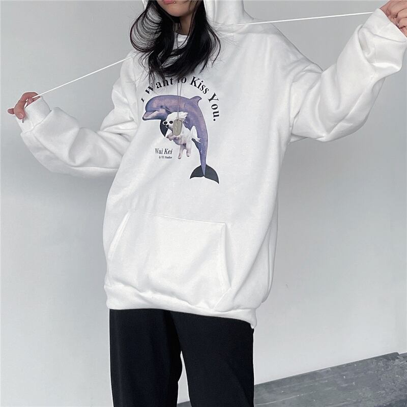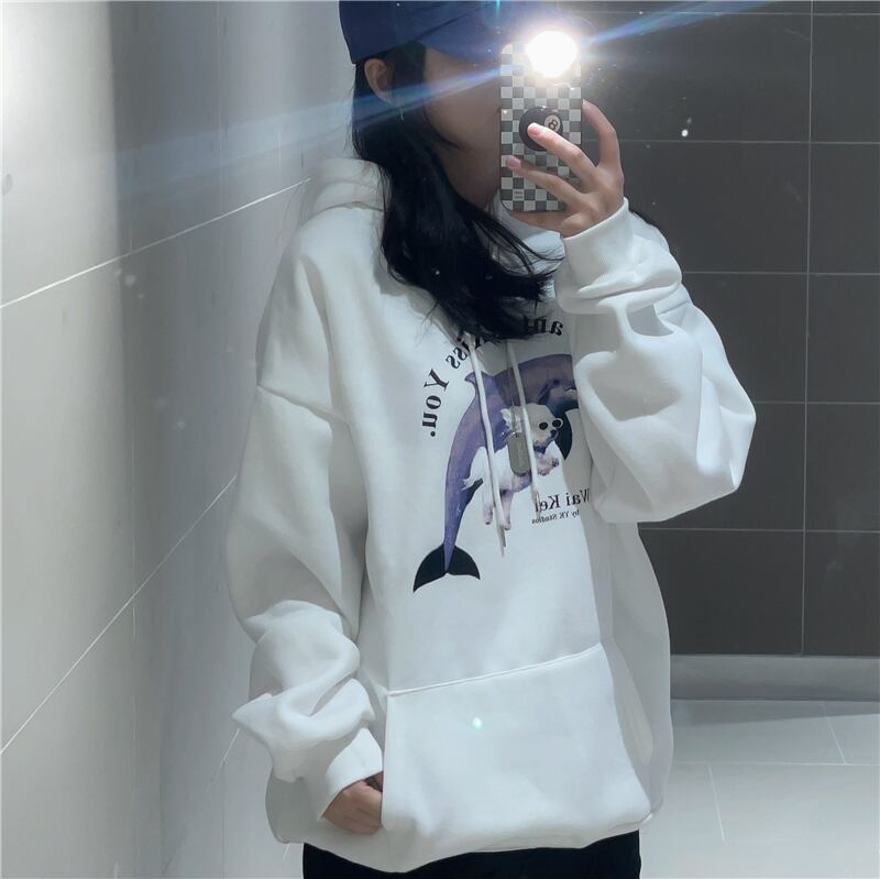 オータムスタンダードプリントフードセーター コート ルーズトップス レディース ロング レトロ 秋物 Brother_is_Style81420001301